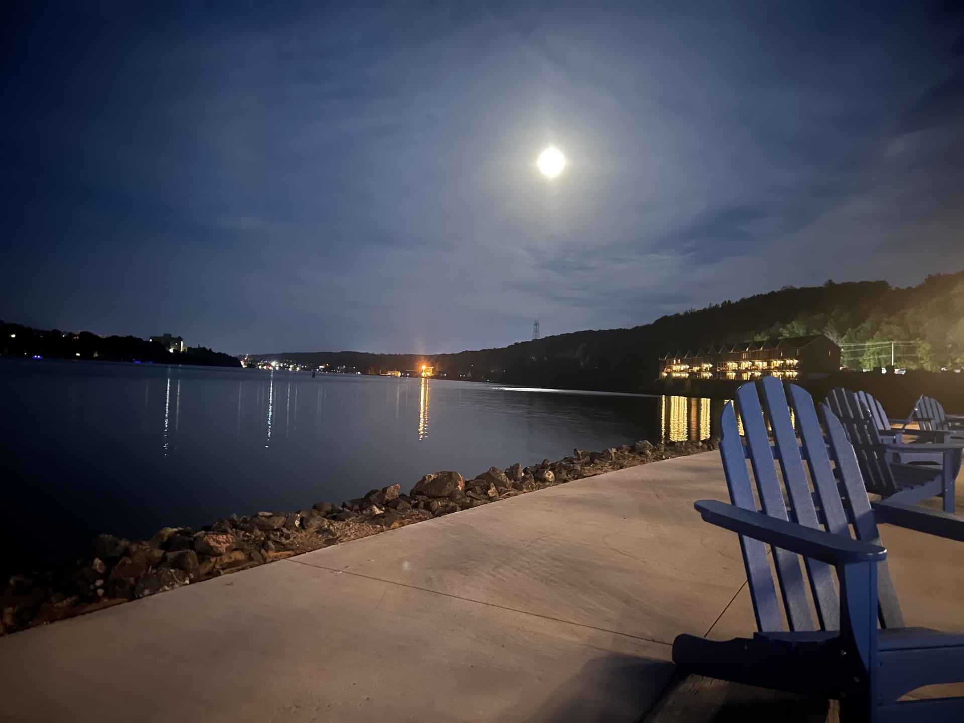 1 bedroom with 2 queen beds or a queen bed and queen pull-out sofa (5" memory foam mattress) in the living room area. Full kitchen with hickory cabinetry complete with dishwasher and built-in microwave. Open-concept living room, dining, and kitchen. Provides sweeping views of the water and a large patio. Every cabin has a washer & dryer.